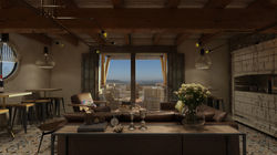 Para el segundo piso de la edificación central de la Torre Hotel Boutique se plantea el diseño interior de un espacio integrado donde convergen la cocina, el livingroom, zona de mesas y terraza exterior bajo un estilo ecléctico contemporáneo donde se combinan elementos tradicionales con mobiliario actual, lo que llena de personalidad al lugar con un estilo único y vibrante cuya calidez hará sentir como en casa al huésped.